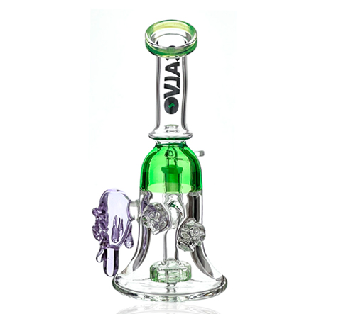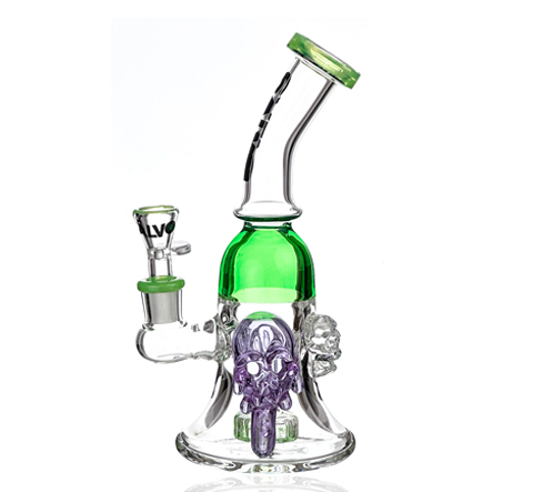 Pequeño Bong estilo Rig, con un diseño fastasma y calavera en su exterior.