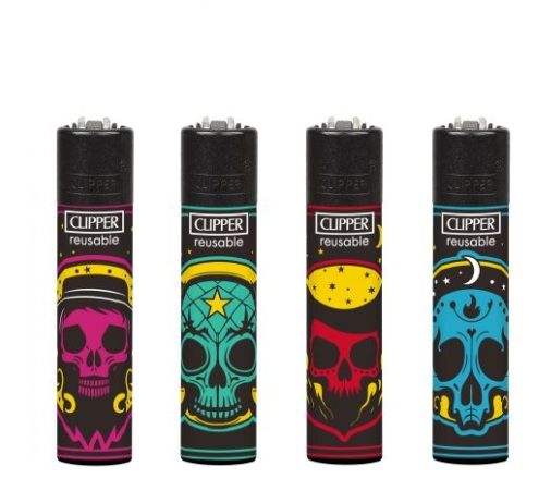 Encendedor Clipper Black Magic Skulls 24 unid.