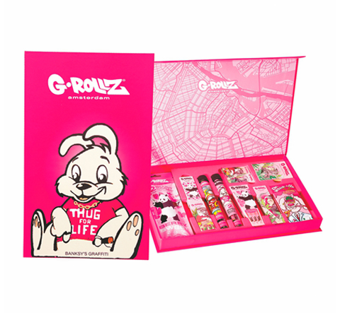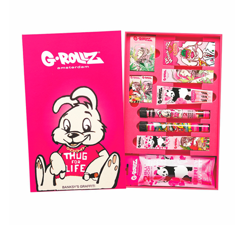 - 1 Papelillo G-Rollz 1 1/4 + Tips + Bandeja Banksy Conejo Pink